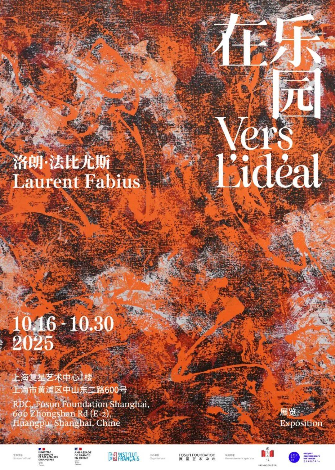 此次名为《在乐园》的展览,汇聚了约50幅抽象画作,标志着艺术家洛朗·法比尤斯十五年来潜心创作的初次亮相。展览以“主题叙事与内省探索”为脉络,通过五个篇章缓缓铺陈:自然的混沌、迈向理想秩序的悸动、现代社会中的方向迷失、回归感性本真,以及在自然与文化间重构新的平衡。作品中既有沉静的冥想气息,又蕴含着刮擦、覆涂、抹除等笔触所带来的鲜活能量。展览的空间与叙事安排,邀请观众在行走中完成从感受、反思到选择的精神历程。在不同的“乐园”之间穿梭,观众被邀请去衡量、去选择、去想象一个可能的、复杂的并且可持续的共同的未来。
