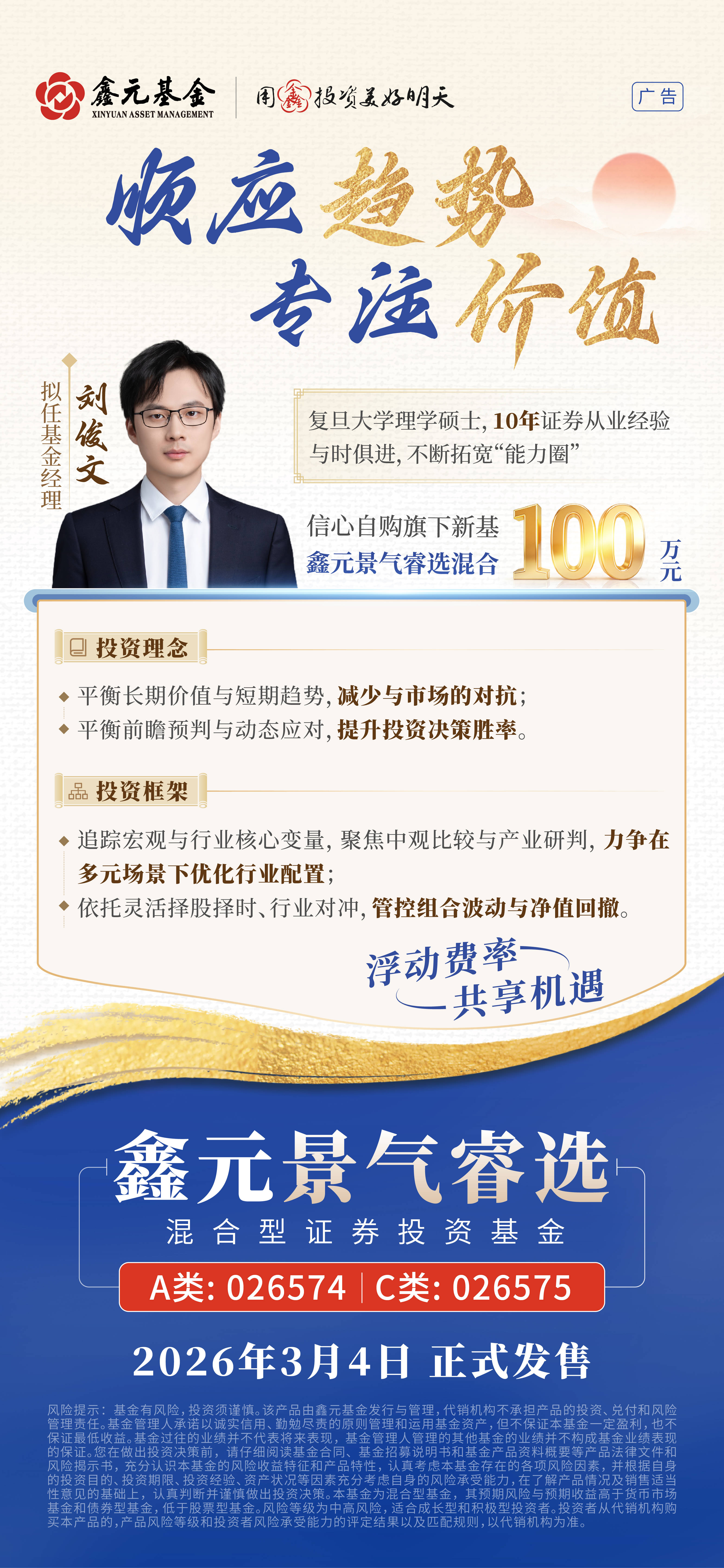 2026-03-11英雄联盟投注,英雄联盟,英雄联盟下注,LOL投注官网,英雄联盟赛事投注,英雄联盟下注,英雄联盟电竞,英雄联盟投注网站,LOL,英雄联盟赛事,LOL投注,LOL赛事下注,LOL投注网站,lol下注平台3月4日,基金经理刘俊文自购旗下新基鑫元景气睿选混合(A类:026574C类:026575)100万元,以真金白银的底气彰显投资信心,与持有人并肩,共启未来机遇。 自2023年7月证监会发布实施《公募基金行业费率改革工作方案》以来,公募基金行业费率改革持续深化,从管理人端降费、交易端降费,到2026年销售端改革落地,长期投资理念愈发深入人心。鑫元基金积极响应改革号召,旗下首支浮动费率产品,鑫元景气睿选混合基金正式发行中,与投资者携手把握权益市场机遇,共赴长期投资之约。 坚定与持有人同行 浮动管理费设计,核心在于将基金公司收益与投资者实际持有体验深度绑定,真正实现利益同频。产品管理费收取规则兼顾持有期限与投资收益,充分引导长期持有。当投资者持有期限不足1年,按1.20%的年费率收取管理费;持有期限满1年及以上,将根据持有期间年化收益率相对业绩比较基准的表现,分三档确定管理费率,精准体现业绩定费率的核心逻辑。 具体来看,若持有期间年化收益率为正且跑赢业绩比较基准超6%,管理人将收取1.50%/年的管理费,与投资者共享超额收益;若持有期间年化收益率跑输业绩比较基准3%或更多,管理费率降至0.6%/年,管理人与投资者共担业绩不佳的风险;其余情形下,管理费率仍为1.2%/年。 注:①R为该笔基金份额持有期间年化收益率,Rb为本基金业绩比较基准同期年化收益率。②特别的,当持有期限达到一年及以上,R>Rb+6%且R>0的情形下,若拟扣除超额管理费后的持有期间年化收益率小于等于Rb+6%,或小于等于0时,仍按1.20%年费率收取该笔基金份额的管理费,以使得该笔基金份额在扣除超额管理费后的持有期间年化收益率仍需满足本基金收取超额管理费的标准。 在销售服务费方面,产品同样给予长期持有者优惠:C类份额通过直销机构认购、申购的,不收取销售服务费;通过代销机构认购、申购的,投资者持续持有期限超过1年,将不再继续收取销售服务费,进一步降低长期投资成本。 拟任基金经理刘俊文掌舵 鑫元景气睿选混合拟任基金经理为刘俊文,其拥有复旦大学理学硕士学历,10年证券从业经验,深耕权益投资领域多年,形成了独具特色的投资理念:平衡长期价值与短期趋势,减少与市场的对抗;平衡前瞻预判与动态应对,提升投资决策胜率。 从历史业绩来看,刘俊文管理的产品展现出优异的超额收益创造能力。截至2025年四季度末,其管理的鑫元价值精选A近三年净值增长率达31.41%,同期业绩比较基准为22.43%,超额收益8.98%;近1年净值增长率26.45%,大幅跑赢同期14.05%的业绩比较基准。根据国泰海通证券2026年2月1日发布的《基金业绩排行榜》,截至2026年1月30日,鑫元价值精选A在1733只同类产品中排名第329位,跻身前19%,业绩表现亮眼。 数据来源:产品净值增长率及同期业绩比较基准来源于产品2025年第四季度报告;排名来源于2026.2.1发布于国泰海通证券的《基金业绩排行榜》,数据截至2026.1.30。基金过往的业绩并不代表将来表现,基金管理人管理的其他基金的业绩并不构成基金业绩表现的保证。 多年的投研积累与实战经验,让刘俊文具备了扎实的行业研究能力和组合管理能力,也为鑫元景气睿选混合的未来运作奠定了坚实基础。 后市观点 刘俊文表示,当前市场呈现结构性机会,需在警惕风险的同时把握确定性机遇。 一方面,宏观先行指标仍在下行,美股标普500席勒市盈率已逼近历史泡沫区间,局部高估值板块风险不容忽视。 另一方面,一批低估值板块正逐步开启上行景气周期。这类板块或经长期估值消化具备安全边际,或在高股息基础上实现业绩稳步改善,或成长性持续强化。这类确定性更强的板块,正是我们应当把握的机会。 独行者疾,众行者远。鑫元基金此次推出首支浮动费率产品鑫元景气睿选混合,既是顺应公募基金行业费率改革的趋势,更是以实际行动践行与持有人长期同行的理念。 鑫元景气睿选混合(A类:026574;C类:026575)正式发行中,诚邀各位投资者携手同行,共享长期投资价值。 注:1、鑫元价值精选成立于2018.1.23,业绩比较基准为沪深300指数收益率×30%+恒生指数收益率×30%+中证综合债券指数收益率×40%。丁玥自2018.1.23至2022.6.28管理该基金,赵慧自2018.11.13至2021.11.10管理该基金,林启姜自2022.6.28至2023.1.5管理该基金,刘俊文自2022.10.17管理该基金。 截至2025.12.31,据该产品各期定期报告显示,鑫元价值精选A业绩表现/业绩比较基准为:2021年:10.49%/-3.69%、2022年:-23.90%/-9.52%、2023年:-2.99%/-5.54%、2024年:7.12%/13.65%、2025年:26.45%/14.05%;鑫元价值精选C业绩表现/业绩比较基准为:2021年:9.97%/-3.69%、2022年:-24.28%/-9.52%、2023年:-3.44%/-5.54%、2024年:6.22%/13.65%、2025年:25.81%/14.05%。鑫元价值精选于2021.2.3修改投资范围,增加存托凭证为投资标的,详阅基金法律文件。 2、拟任基金经理刘俊文:10年证券从业经验。理学硕士研究生。历任南京证券股份有限公司行业研究员。2017年4月加入鑫元基金,历任权益研究员、基金经理助理,现任基金经理。 风险提示:基金有风险,投资须谨慎。鑫元景气睿选混合型证券投资基金由鑫元基金发行与管理,代销机构不承担产品的投资、兑付和风险管理责任。基金管理人承诺以诚实