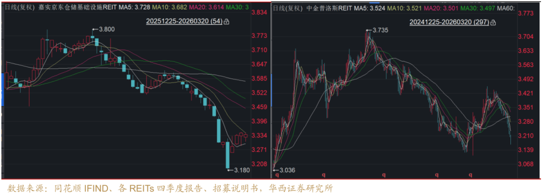 嘉实京东仓储基础设施REIT开始止跌,可能与廊坊项目续约安排渐近有关。嘉实京东仓储基础设施持有3个仓储物流不动产项目,分别位于重庆、武汉、廊坊三个物流节点城市,3个项目租户均为京东物流子公司,单一大租户下出租率100%。此前,重庆项目租约于2024年12月31日到期,续约时起始净有效租金从23.98下调至20.16元/平/月,下调幅度约16%,导致整只REIT的平均净有效租金单价下降0.99%,2025年运营收入较2023年度评估报告预测值预计下降2.03%。